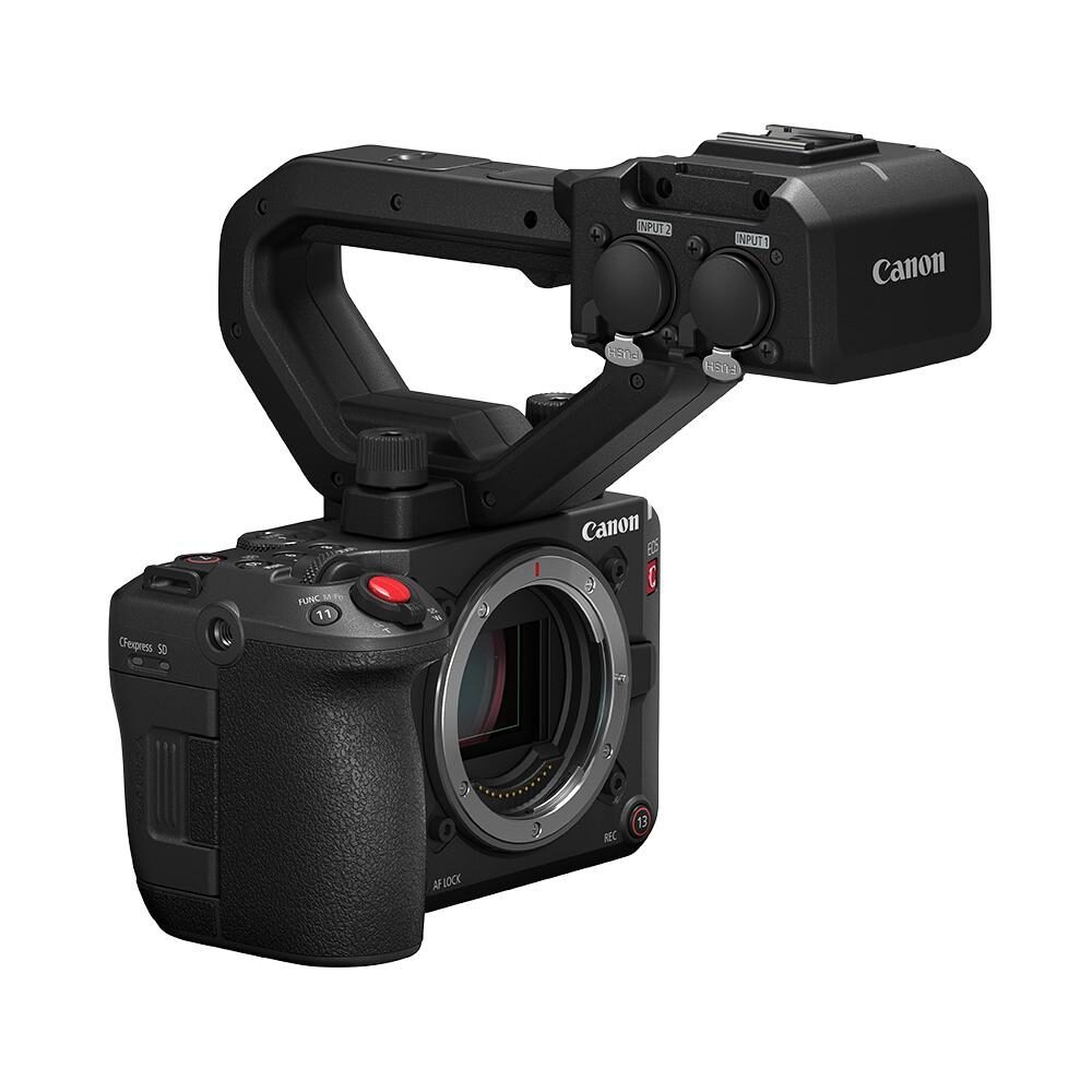 La caméra EOS C50 est conçue pour donner libre cours à la créativité. Le boîtier compact et complet de l’appareil photo comprend le tout nouveau capteur CMOS 7K plein cadre de Canon qui a des capacités d’enregistrement interne en pleine ouverture selon le rapport 3:2, 4K/120p et au format Cinema RAW Light jusqu’à 7K/60P. L’appareil EOS C50 est doté de la mise au point automatique avec capteur CMOS à double pixel II de nouvelle génération de Canon, de l’enregistrement simultané 2K avec recadrage, de l’intégration de la fonction de transfert de l’appareil au nuage Frame.io d’Adobe et prend en charge le protocole XC qui permet de contrôler l’appareil à distance sur IP par Wi-FiMD ou par un adaptateur Ethernet USB-C tiers compatible. La poignée amovible supérieure incluse comporte deux prises audio XLR pleine taille, un bouton Marche/Arrêt et une commande de zoom à bascule. De plus, cet appareil peut saisir des images fixes de 32 Mpx en mode photo. L’appareil EOS C50 s’intègre parfaitement dans presque tous les milieux de production. Il est polyvalent et il offre une qualité d’images exceptionnelle dans un boîtier qui tient pratiquement dans la paume de la main.